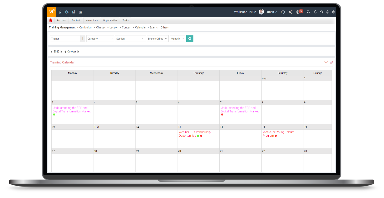 باستخدام جدول أعمال تدريب Workcube، يمكنك بسهولة تتبع جدول أعمال التدريب والتقويم الخاص بك.